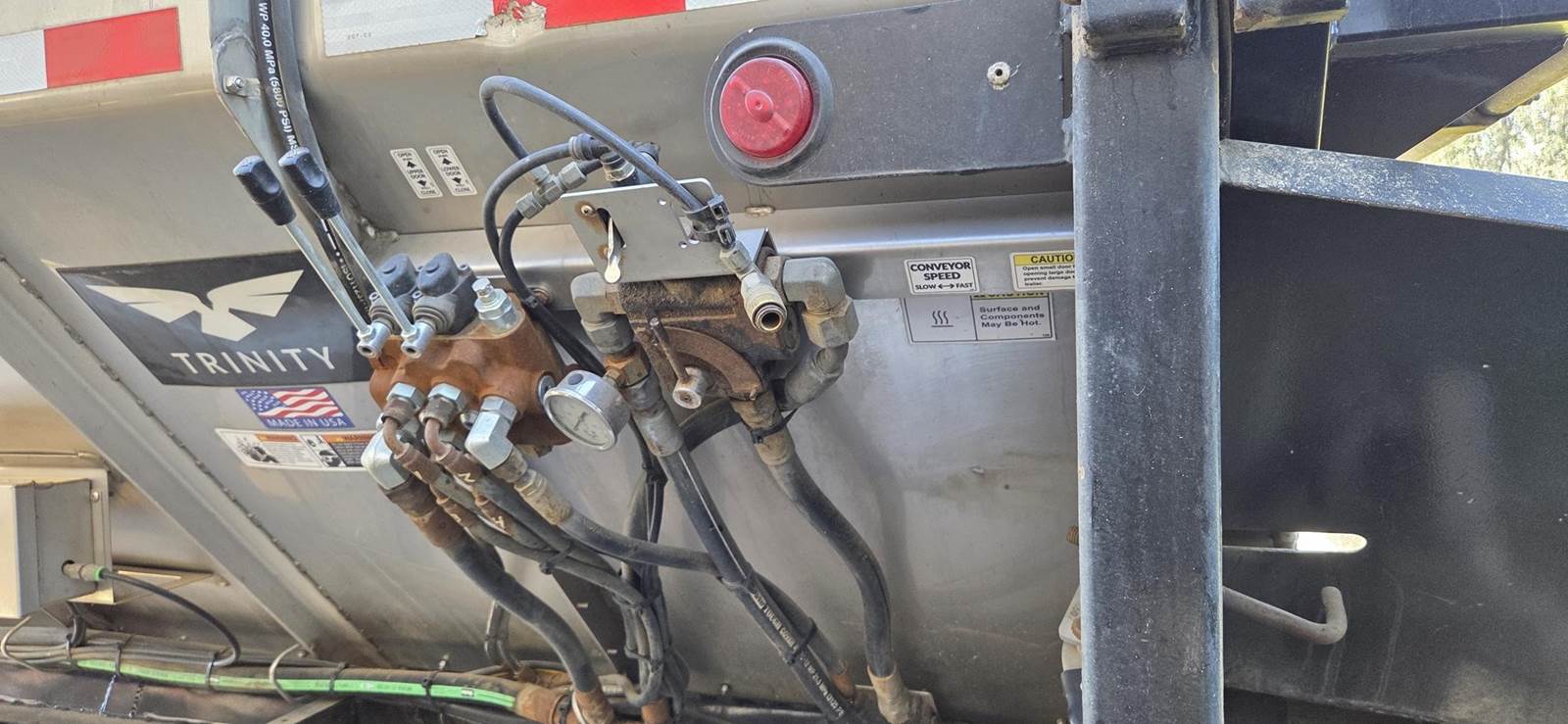 2022 Trinity 53' 102" Wide Quad Axle 47" Side 48" Belt, Top Hinge Door with Knife Gate, Full Poly Liner, Electric Tarp, Rear Steerable Lift Axle